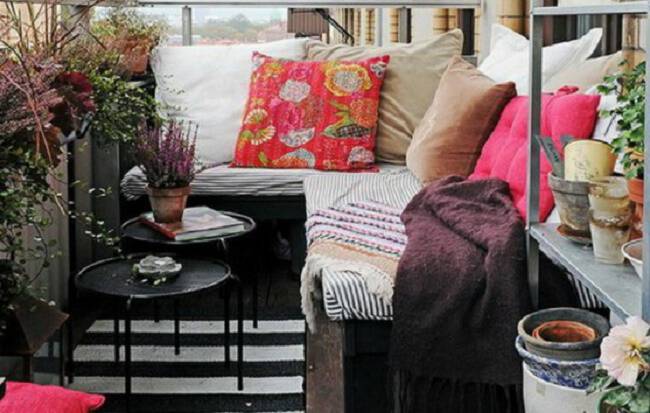 Αν θέλετε να γεμίσετε τον χώρο σας ακόμα περισσότερο, μπορείτε να προσθέσετε σε κάθε γωνία του μπαλκονιού ένα απλό πλαστικό σκαμπό και πάνω σε αυτό να βάλετε είτε πολύχρωμα μαξιλάρια είτε γλάστρες με όμορφα λουλούδια.