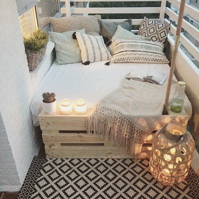 Εάν το μπαλκόνι σας είναι στενό και μακρύ κάθε φορά, έχετε λίγο περισσότερη ελευθερία όσον αφορά τη διάταξη. Ένας πάγκος ή ένας καναπέ-κρεβάτι θα ήταν πολύ κατάλληλος σε αυτή την περίπτωση. Με μερικά μαξιλάρια και μια μαλακή κουβέρτα, μπορείτε να δημιουργήσετε ένα άνετο αναγνωστικό χώρο.