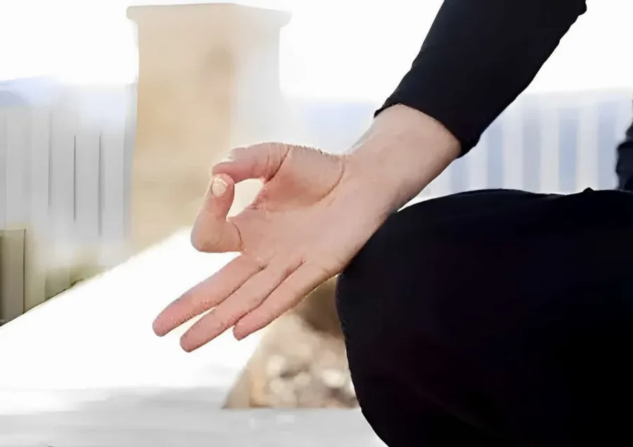 Κρατήστε τα υπόλοιπα δάχτυλά σας ίσια. Η προτιμώμενη θέση είναι να κάθεστε σταυροπόδι.