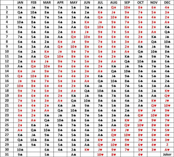Χαρτί γενεθλίων: Η τράπουλα είναι πολύ καλά μελετημένη, αλλά και καλοφτιαγμένη. Κάθε μήνας ή ημέρα του χρόνου έχουν τα δικά τους χαρτιά. Έχουν τα δικά τους σύμβολα, αλλά και τα δικά τους χρώματα. Αυτό που πρέπει να κάνετε αρχικά, είναι να δείτε τον πίνακα. Στη συνέχεια θα πρέπει να βρείτε το συνδυασμό από τα γενέθλιά σας. Αυτό, διότι τα γενέθλιά σας έχουν ιστορία και θα πρέπει να τη μάθετε. Αναλυτικότερα: