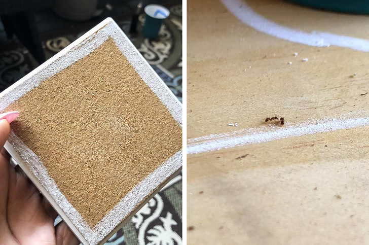 Λίγο ζάχαρη αν πέσει στο πάτωμα της κουζίνας, μετά από λίγο θα σχηματιστεί ολόκληρη αποικία από μυρμήγκια. Ευτυχώς για εμάς, λοιπόν, αυτά τα άκακα πλάσματα φοβούνται πολύ την κιμωλία. Αυτό που πρέπει να κάνετε είναι να σχεδιάσετε με την κιμωλία γραμμές (στην πόρτα, στο παράθυρο, στα ντουλάπια, στο πάτωμα) και θα δείτε ότι τα μυρμήγκια δεν θα περάσουν… τα όρια!