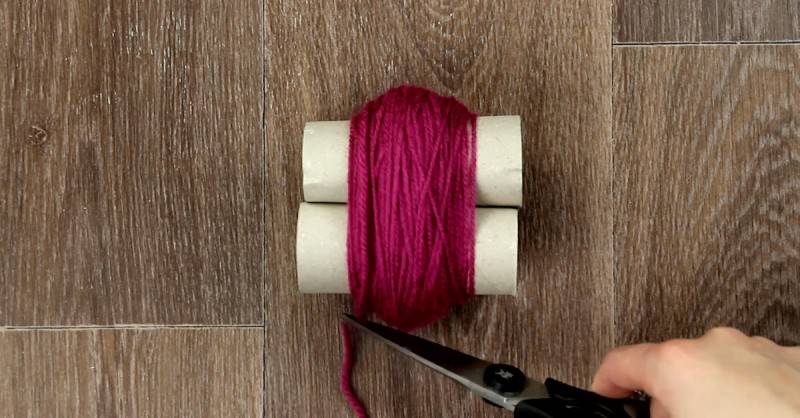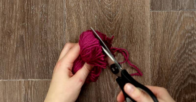 Στο επόμενο βήμα, κόψτε τις θηλειές του νήματος για να δημιουργήσετε πομ πομ.
