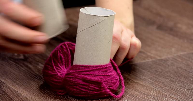 Στη συνέχεια, κόψτε ένα κομμάτι νήματος και περάστε το ανάμεσα από τα ρολά και δέστε και τις δύο άκρες γύρω από το τυλιγμένο νήμα.