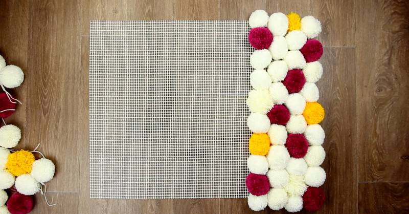 Επαναλάβετε τα βήματα όσες φορές χρειαστεί με τους χρωματικούς συνδυασμούς που θέλετε, μέχρι τα πομ πομ να καλύψουν όλο το πλέγμα.