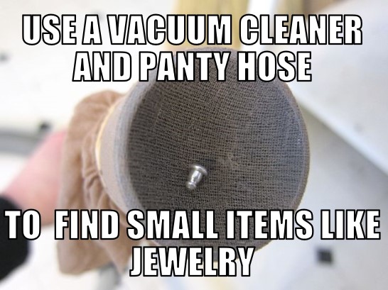 Προσαρμόστε ένα κομμάτι καλσόν στον σωλήνα της ηλεκτρικής σκούπας για να βρείτε μικρά αντικείμενα.
