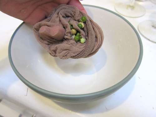 Χρησιμοποιήστε ένα καθαρό καλσόν για να σουρώσετε τρόφιμα, αν δεν έχετε εύκαιρο σουρωτήρι.