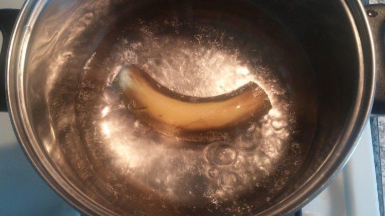 – Βάλτε την μπανάνα σε μια κατσαρόλα με νερό που βράζει. Αν το νερό είναι εμφιαλωμένο ή καθαρισμένο με κάποιο τρόπο, ακόμα καλύτερα! Βράζουμε για περίπου 10 λεπτά. Πασπαλίζουμε κανέλα μέσα στο νερό. Αν θέλετε προσθέστε Stevia για να είναι γλυκό. Η Stevia βοηθά στην εξισορρόπηση των επιπέδων σακχάρου στο αίμα, και δεν ανεβάζει τα επίπεδα σακχάρου στο αίμα πριν πάτε για ύπνο.