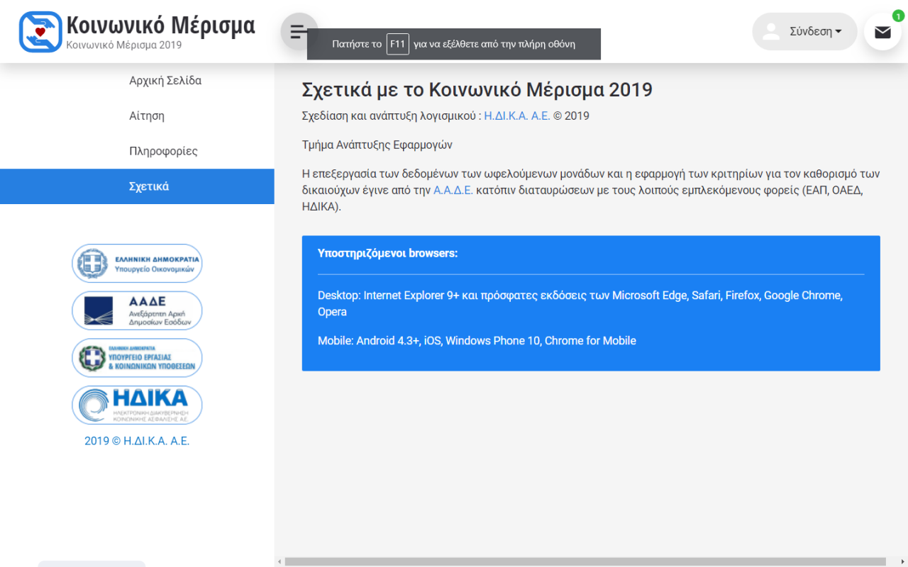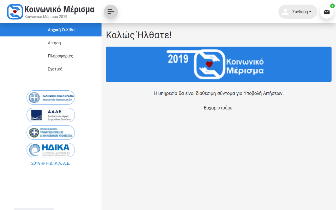 Η πλατφόρμα των αιτήσεων στο www.koinonikomerisma.gr είναι ήδη «στον αέρα» και σύντομα θα ανοίξει τις πύλες του το νέο ηλεκτρονικό σύστημα που ετοίμασαν η ΗΔΙΚΑ σε συνεργασία με την ΑΑΔΕ.