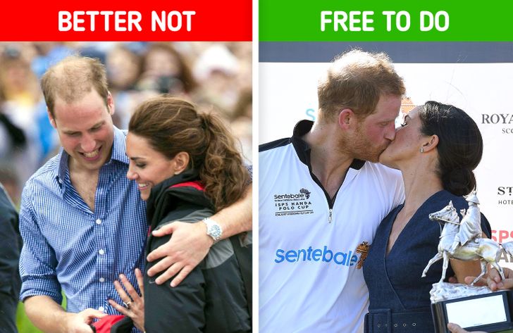Αυτός είναι ένας άγραφος κανόνας, αλλά οι δημόσιες εκδηλώσεις αγάπης θεωρούνται απαγορευμένες για τη βασιλική οικογένεια. Παρόλο που ο Χάρι και η Μέγκαν έδειχναν πάντα τα συναισθήματά τους στο κοινό, τέτοιες ενέργειες δεν πέρασαν ποτέ απαρατήρητες και οδήγησαν σε πολλές συζητήσεις με τα μέλη της. Αλλά τώρα πλέον μπορούν να αισθάνονται ελεύθεροι για στις πράξεις τους και είναι σε θέση να δείξουν την αγάπη που έχει ο ένας για τον άλλο χωρίς να κριθούν αρνητικά για αυτό.