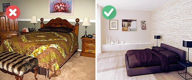 Όπως και οι πετσέτες μπάνιου, έτσι και τα καλύμματα κρεβατιού δείχνουν οπτικά ωραία αν είναι μονόχρωμα. Τα λεοπάρ και τα ποικιλόχρωμα καλύμματα, όπως και τα πολλά μαξιλάρια, προκαλούν μόνο σύγχυση σε όποιον μπαίνει στο δωμάτιο.