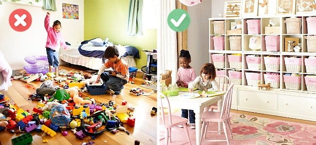 Τα παιχνίδια δεν χρειάζεται να είναι σκορπισμένα σε όλο το παιδικό δωμάτιο, αλλά μπορούν να αποθηκευτούν σε πολλά κουτιά με διάφορους τρόπους οργάνωσης, π.χ. αυτοκινητάκια, μπάλες, κούκλες κτλ.