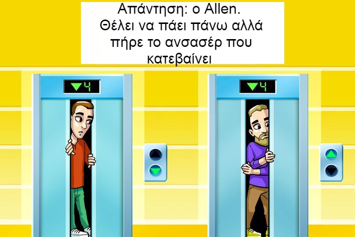 11. Ο Sam κατεβαίνει στον πρώτο όροφο και ο Allen πηγαίνει στο δωμάτιό του στον όγδοο όροφο. Ποιος δεν είναι τόσο έξυπνος;