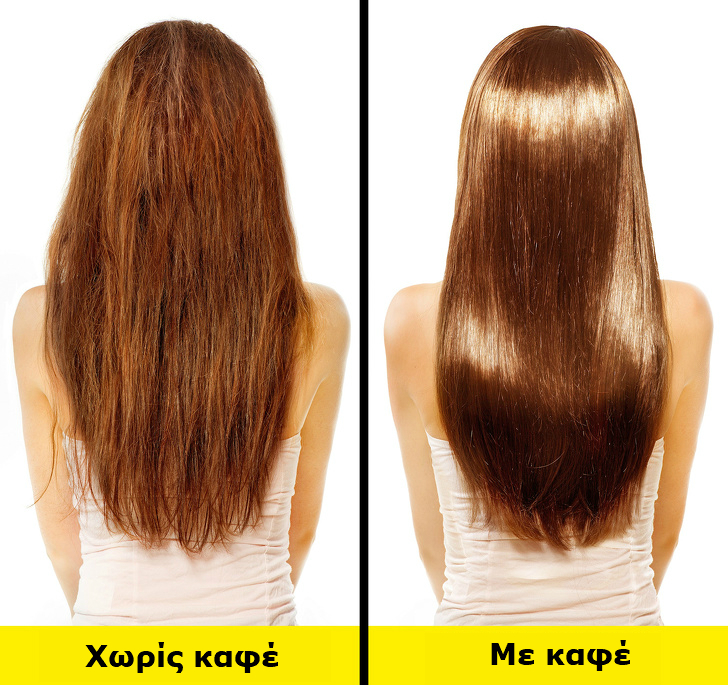 Όχι μόνο κάνει τα μαλλιά σας γυαλιστερά, αλλά η καφεΐνη είναι επίσης μια σπουδαία θεραπεία για την αντιμετώπιση της τριχόπτωσης, διότι διεγείρει την ανάπτυξη των μαλλιών και τα κάνει πιο απαλά και θρεμμένα.
