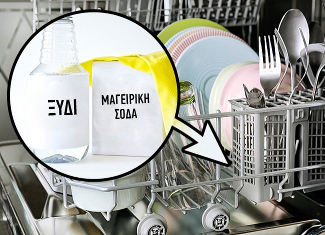 Για να καθαρίσετε το πλυντήριο πιάτων, ρίξτε ένα φλιτζάνι ξύδι κατά τη διάρκεια του πρώτου κύκλου, και προσθέστε μερικές κουταλιές μαγειρικής σόδας κατά τη διάρκεια του δεύτερου κύκλου.