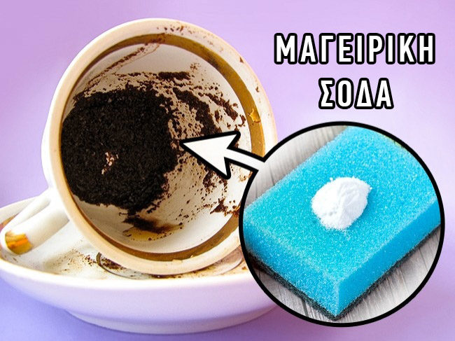 Οι λεκέδες από τσάι και καφέ που δεν εξαφανίζονται μετά από το κανονικό πλύσιμο, αφαιρούνται εύκολα με μαγειρική σόδα.