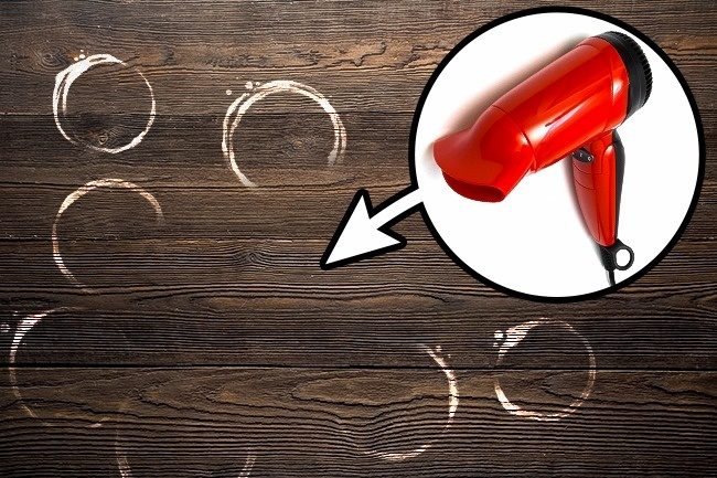 Οι λεκέδες νερού στο ξύλο, μπορούν να φύγουν με το πιστολάκι των μαλλιών. Τελειώστε σκουπίζοντας την επιφάνεια με λάδι.