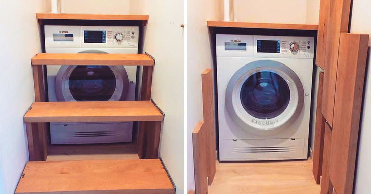 Πλήρως εντοιχιζόμενο πλυντήριο κάτω από τη σκάλα