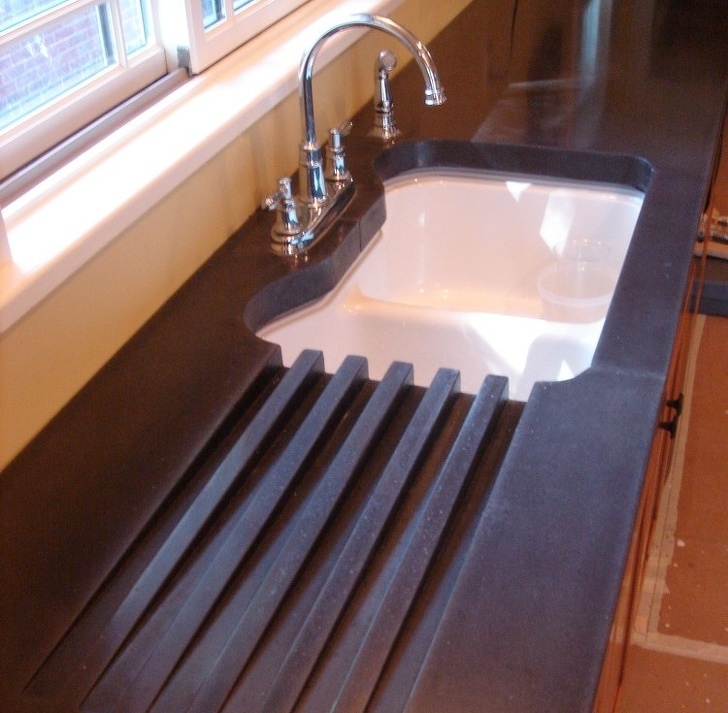 Πάρτε αυτό το πάγκο με ολοκληρωμένη αποστράγγιση και δεν θα ανησυχήσετε για τα νερά των πιάτων ποτέ ξανά.