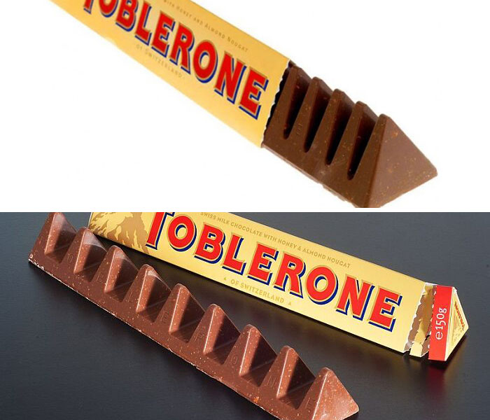 Το 2016, η Toblerone ανακοίνωσε ότι άλλαζε το εικονικό σχέδιο των μπαρ του Ηνωμένου Βασιλείου προσθέτοντας μεγαλύτερα κενά μεταξύ των αναχωμάτων, πράγμα που σήμαινε ότι οι μπάρες είχαν περίπου 10% λιγότερη σοκολάτα στην ίδια τιμή. Προφανώς, η ατυχής αλλαγή οφείλεται στην αύξηση της τιμής των συστατικών. Οι άνθρωποι δεν ήταν πολύ χαρούμενοι για αυτό, είναι το λιγότερο που μπορούμε να σχολιάσουμε.