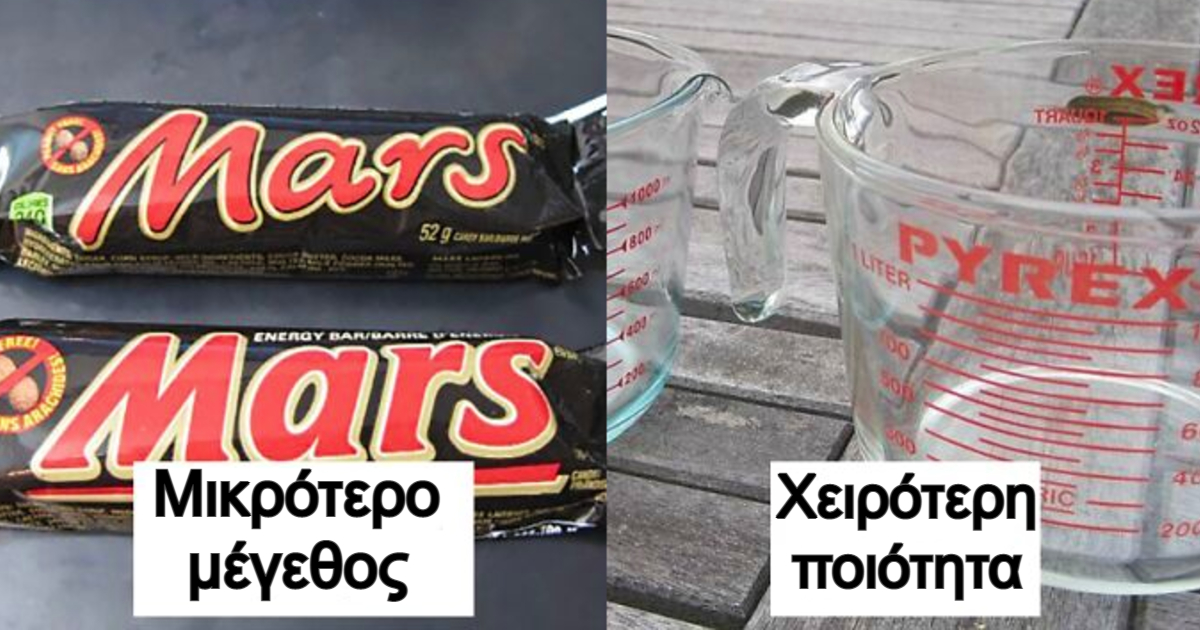 Χωρίς να καθυστερούμε άλλο, σας προσκαλούμε να δείτε μερικά παραδείγματα προϊόντων που κάποια στιγμή επηρεάστηκαν από τη συρρίκνωση και την σακουλοποίηση.