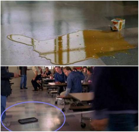 Στον Spiderman, η Mary Jane γλυστρά πάνω σε χυμένο χυμό και στο επόμενο καρέ στη θέση του χυμού εμφανίζετε ένας δίσκος!