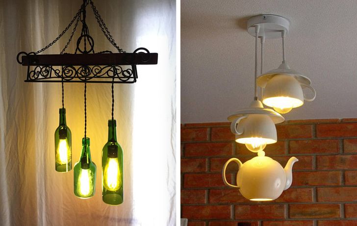 10. Ζωντανέψτε το δωμάτιό σας με δημιουργικούς πολυελαίους φτιαγμένους από φλιτζάνια και μπουκάλια.