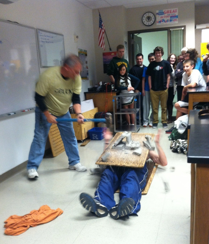 20. Ο Φυσικός μας ξάπλωσε πάνω σε καρφιά ενώ ένας άλλος καθηγητής χτυπούσε με σφυρί τσιμεντόλιθους πάνω σε άλλα καρφιά