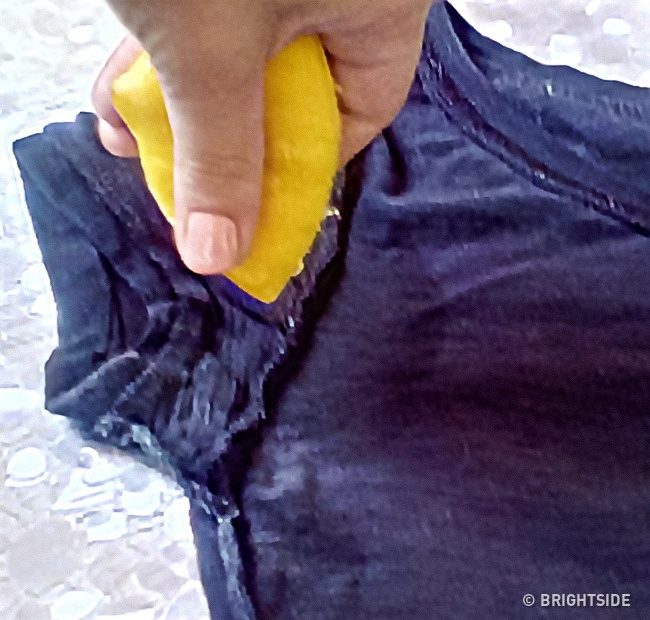 Με τη βοήθεια του χυμού λεμονιού , μπορείτε να αφαιρέσετε του φρέσκους λεκέδες αποσμητικού.