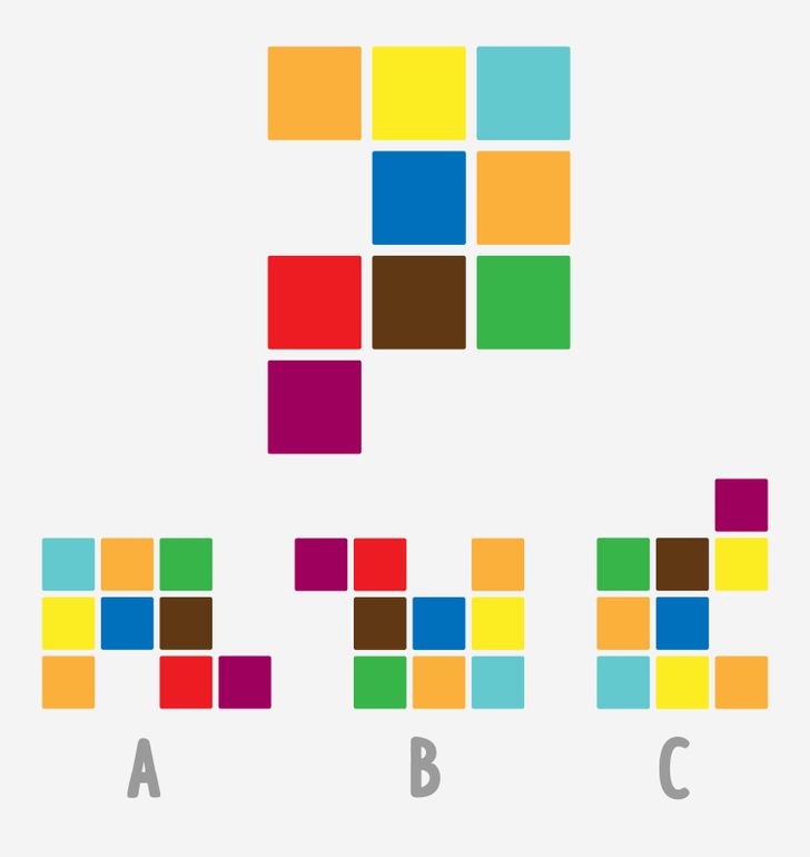 Εάν γυρίσετε αυτά τα σχήματα, όλα μοιάζουν με το συγκεκριμένο παράδειγμα. Αλλά το σχήμα με το γράμμα C δεν έχει το κόκκινο κουτί.