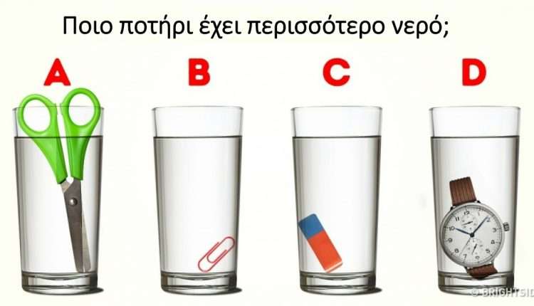 9. Ποιο ποτήρι έχει περισσότερο νερό;