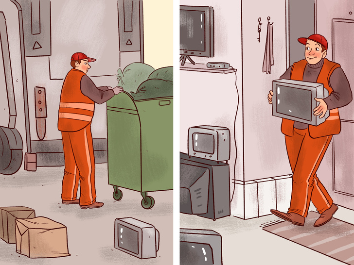 Χάρη στους συλλέκτες απορριμμάτων, τα παλιά αντικείμενα έχουν μια δεύτερη ζωή. Για παράδειγμα, μια παλιά ηλεκτρική σκούπα μπορεί να καθαριστεί και οι παλιές τηλεοράσεις να μπορούν να επιστραφούν πίσω από όπου προήλθαν και να εγκατασταθούν κάπου αλλού. Αν δεν θέλετε να χρησιμοποιήσετε κάτι άλλο, αυτό δεν σημαίνει ότι δεν μπορεί να είναι χρήσιμο.