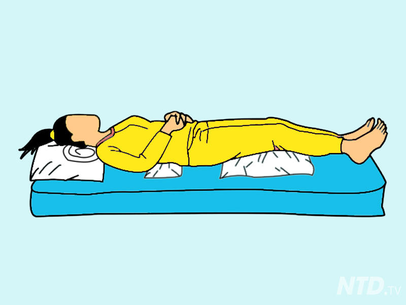 Για τις γυναίκες που πάσχουν από συμπτώματα που σχετίζονται με το προεμμηνορρυσιακό σύνδρομο, το Women’s Health Magazine προτείνει, «Ξαπλώστε ανάσκελα και τοποθετήστε ένα μαξιλάρι κάτω από τα γόνατά σας για να αποφύγετε την καμπύλη στη σπονδυλική σας στήλη.»