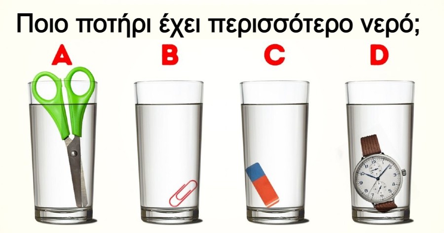 9. Ποιο ποτήρι έχει περισσότερο νερό;
