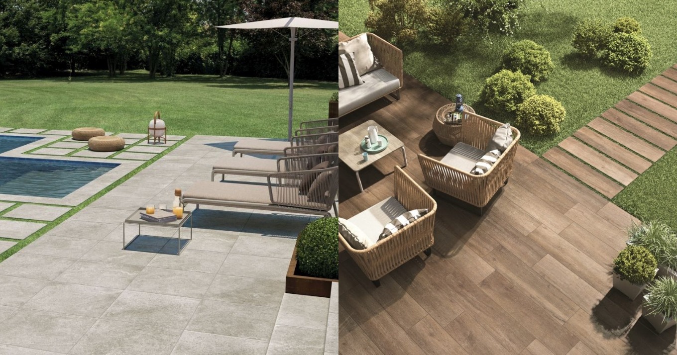 Μια επίσης αγαπημένη επιλογή για πλακάκια εξωτερικού χώρου αποτελούν και τα ξύλινα πλακάκια. Υπάρχουν πορσελανάτα πλακάκια που έχουν ματ μορφή ξύλου, με πολύ καλές αντιολισθητικές ιδιότητες. Το μειονέκτημα που παρουσιάζει αυτή η επιλογή βρίσκεται στην υφή του υλικού, που δεν μοιάζει με εκείνη του ξύλου. Παρόλα αυτά, χάρις την μοναδική αισθητική της, την αντοχή στο χρόνο και την ασφάλεια που προσφέρει, αποτελεί μια εξερετική επιλογή.