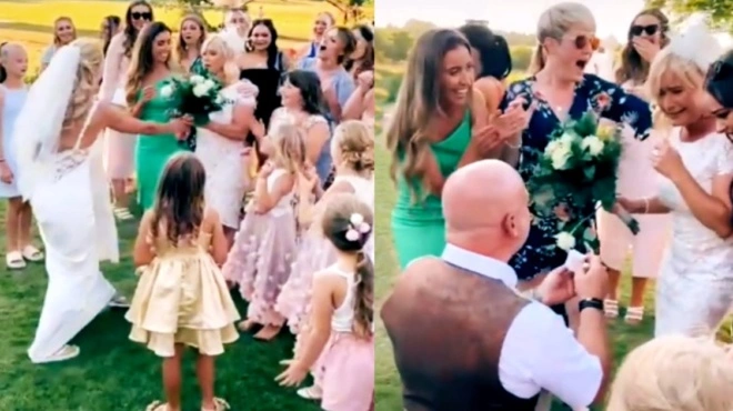Κι αυτό διότι την ώρα που η νύφη ήταν έτοιμη να πετάξει την ανθοδέσμη, γύρισε και την παρέδωσε στην μητέρα της. Στη συνέχεια ένας από τους καλεσμένους πλησίασε τη μητέρα της και της έδωσε ένα δαχτυλίδι, κάνοντάς της πρόταση γάμου.