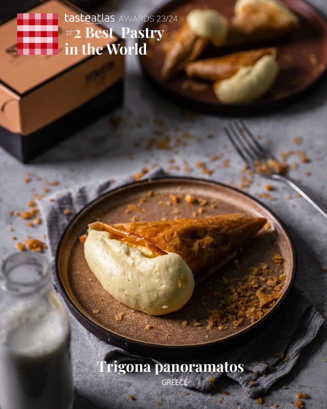 Η φήμη των τριγώνων Πανοράματος έχει ξεπεράσει τα σύνορα της χώρας -όχι ότι δεν το γνωρίζαμε, αφού ουρές από επισκέπτες σχηματίζονται σε ζαχαροπλαστεία για να δοκιμάσουν το ξακουστό γλυκό-, καθώς το Taste Atlas τα κατέταξε στη δεύτερη θέση των καλύτερων γλυκισμάτων του κόσμου.