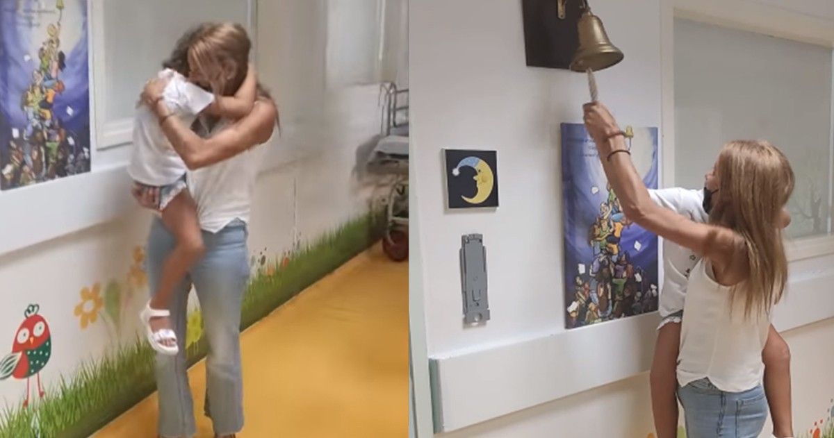 Η μητέρα της ύστερα από τα ευχάριστα νέα, δημοσίευσε ένα βίντεο στο προσωπικό της προφίλ στο Facebook το οποίο δείχνει τη μικρούλα να χτυπά δυνατά το καμπανάκι του νοσοκομείου, δείχνοντας έτσι, ότι νίκησε.