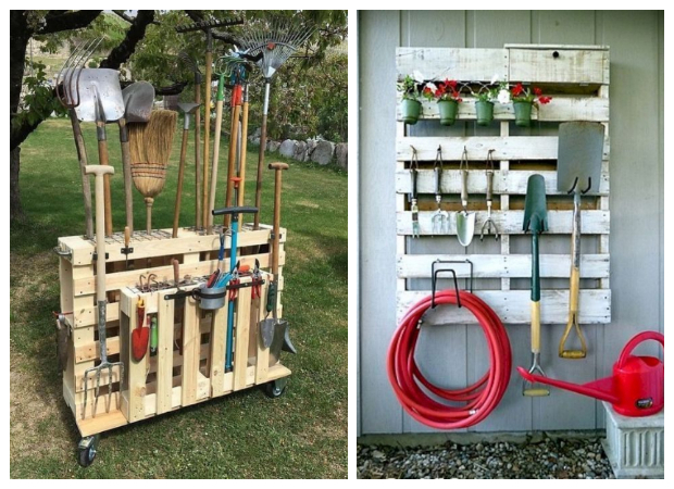 Χρησιμοποιείστε παλέτες για να οργανώσετε – αποθηκεύσετε όλα τα εργαλεία και είδη κήπου σε ένα σημείο.
