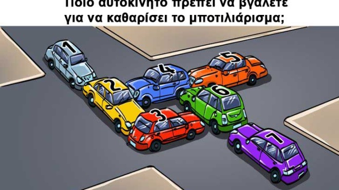 Κοιτάξετε προσεκτικά την εικόνα πριν απαντήσετε στην ερώτηση. Μπορείτε να βρείτε ποιο αυτοκίνητο πρέπει να φύγει; Έχετε 15 δευτερόλεπτα