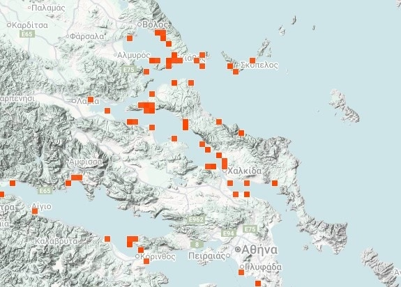 H έξαρση εντοπίζεται κυρίως στον Παγασητικό Κόλπο, με σταδιακή εξάπλωση προς τη Βόρεια Εύβοια, τη Χαλκίδα, και τις Βόρειες Σποράδες με επιβεβαιωμένες παρουσίες σε Σκιάθο και Σκόπελο