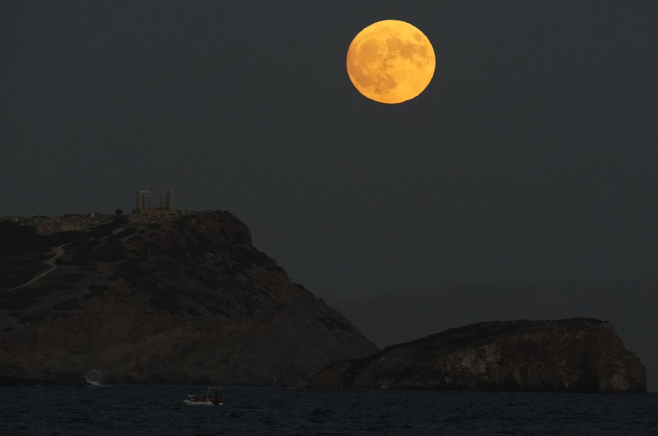 Η εικόνα από το Σούνιο και τον ναό του Ποσειδώνα μαρτυρά τη μαγεία της πανσελήνου του Αυγούστου.