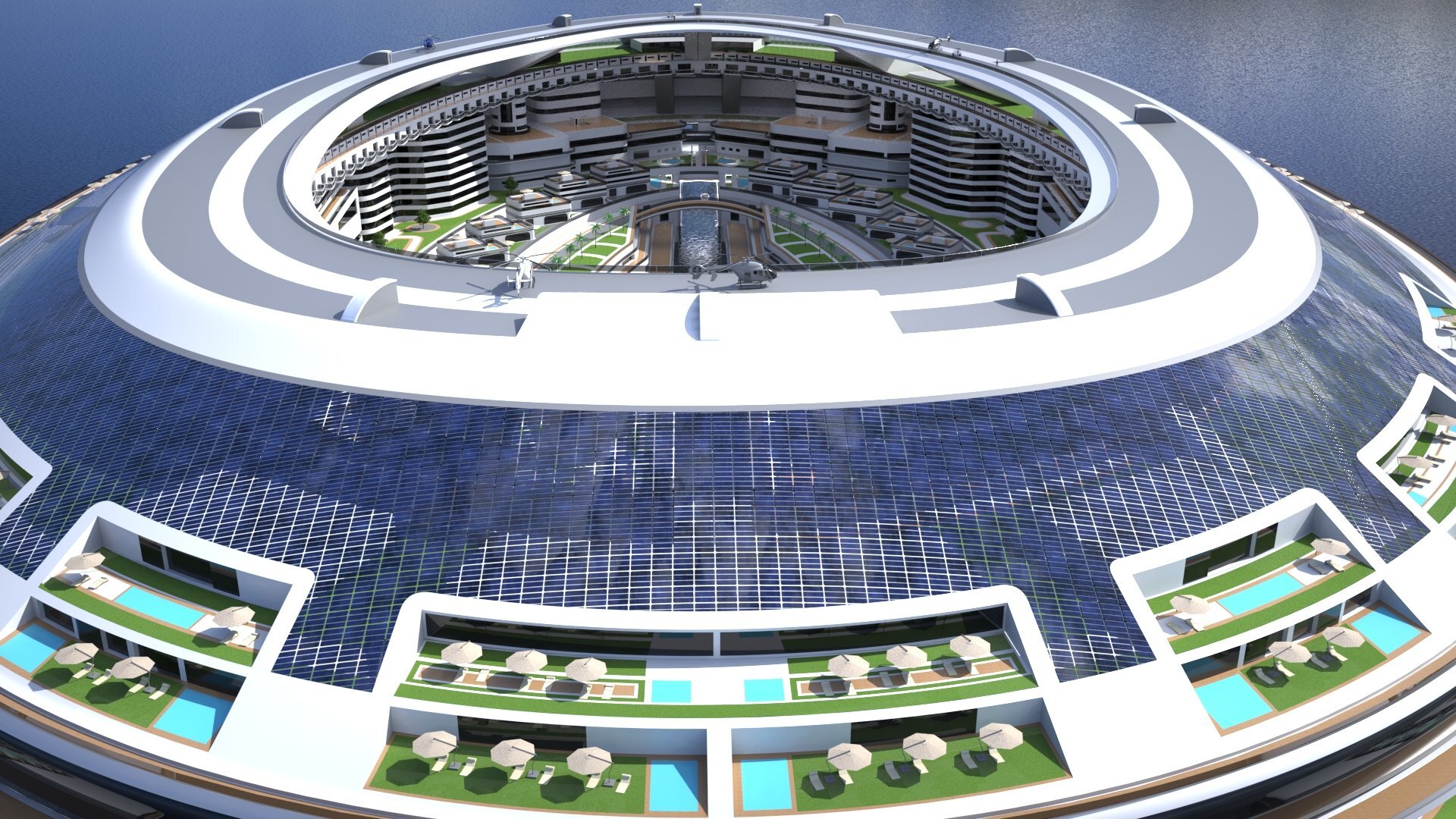 Η εσωτερική δομή της πόλης είναι απίστευτα εντυπωσιακή, με έναν τεράστιο κήπο στον τελευταίο όροφο, beach club και ένα εμπορικό κέντρο. Η Λαζαρίνι ισχυρίζεται ότι η κολοσσιαία κατασκευή μπορεί να φιλοξενήσει 60.000 ανθρώπους, οι οποίοι θα ζουν πλουσιοπάροχα σε 30.000 θέρετρα, παράπλευρα διαμερίσματα και χιλιάδες σύγχρονες βίλες.