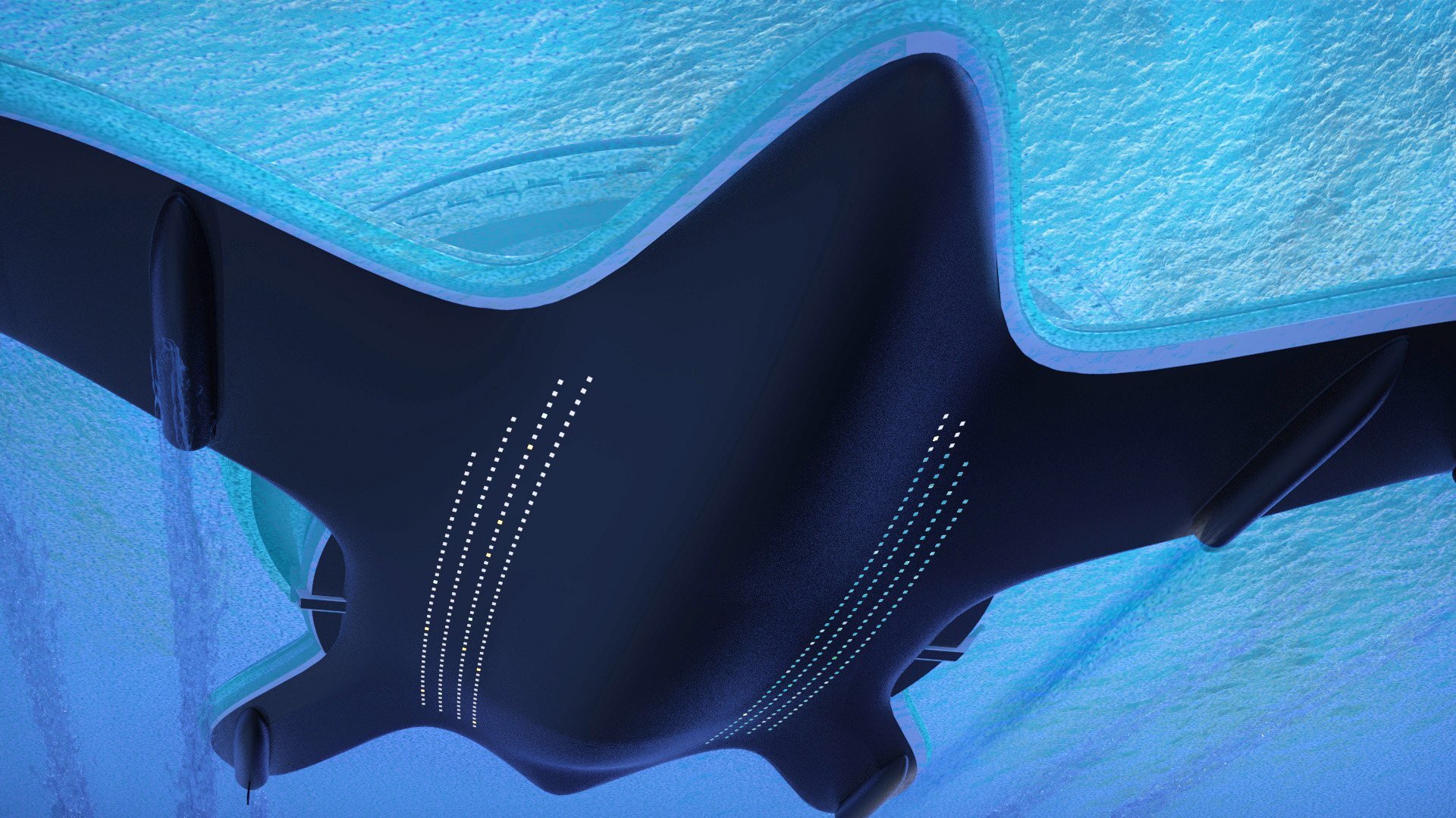 Στον κάτω χώρο, η ομάδα σχεδιασμού έχει διαχωρίσει τη γάστρα σε 30.000 κυψέλες ή διαμερίσματα, ενισχύοντας το αβύθιστο σκάφος, η κοίτη του οποίου θα κατασκευαστεί κυρίως από χάλυβα. Το Pangeos ενσωματώνει επίσης μια φανταστική υποδομή μαρίνας με πλάτος 650 μέτρα και μήκος 600 μέτρα, παρέχοντας έτσι άμεση πρόσβαση στη θάλασσα.