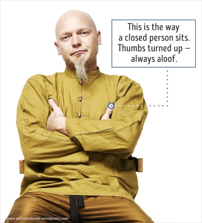 Έτσι κάθεται ένας κλειστός άνθρωπος, με τους αντίχειρες προς τα πάνω και σε απόσταση