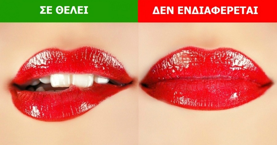 Οι γυναίκες χρησιμοποιούν περισσότερο την γλώσσα του σώματος από τους άντρες όταν τους αρέσει κάποιος. Εάν γλύφει ή δαγκώνει τα χείλια της και παίζει με τα μαλλιά της όταν είναι κοντά σε κάποιον, τότε σίγουρα νιώθει έλξη προς το μέρος του.