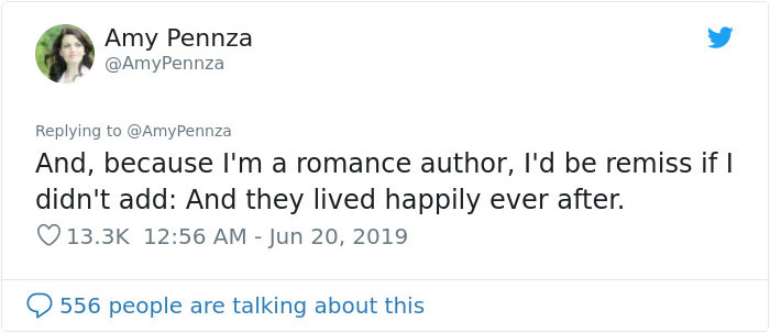 «Και επειδή είμαι ρομαντική συγγραφέας δεν θα μπορούσα να μη γράψω: Και έζησαν αυτοί καλύτερα.»