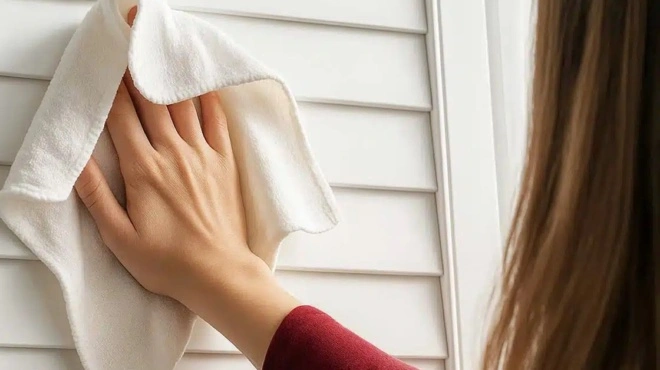 Αφού το κάνετε αυτό, πάρτε τη λεκάνη με το νερό, το ξίδι και το απορρυπαντικό πιάτων με ένα βετέξ. Βουτήξτε αρχικά το βετέξ στο μείγμα και καθαρίστε στην συνέχεια τα παντζούρια σας. Τέλος, σκουπίστε τα με μια καθαρή πετσέτα.