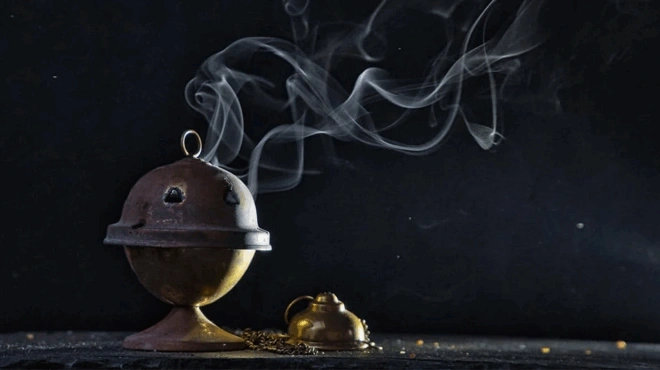 Έπειτα παίρνουμε ένα σπυρί μοσχολίβανο εάν είναι μεγάλο ή τρία εάν τα σπυριά είναι μικρά. Βάζοντας τα επάνω στο αναμμένο καρβουνάκι το ένα σπυρί να λέμε ένας είναι ο Θεός.