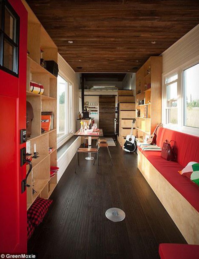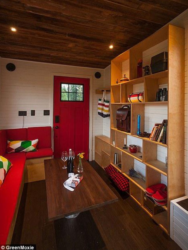 Το τροχόσπιτο, που βλέπετε από τις παρακάτω φωτογραφίες είναι κατασκευασμένο από οικολογικά υλικά από την εταιρεία Greenmoxie. Υπάρχει επιπλέον μια ηλεκτρική γέφυρα που ξεδιπλώνει και μετατρέπεται σε βεράντα, για επιπλέον εξωτερικό χώρο.