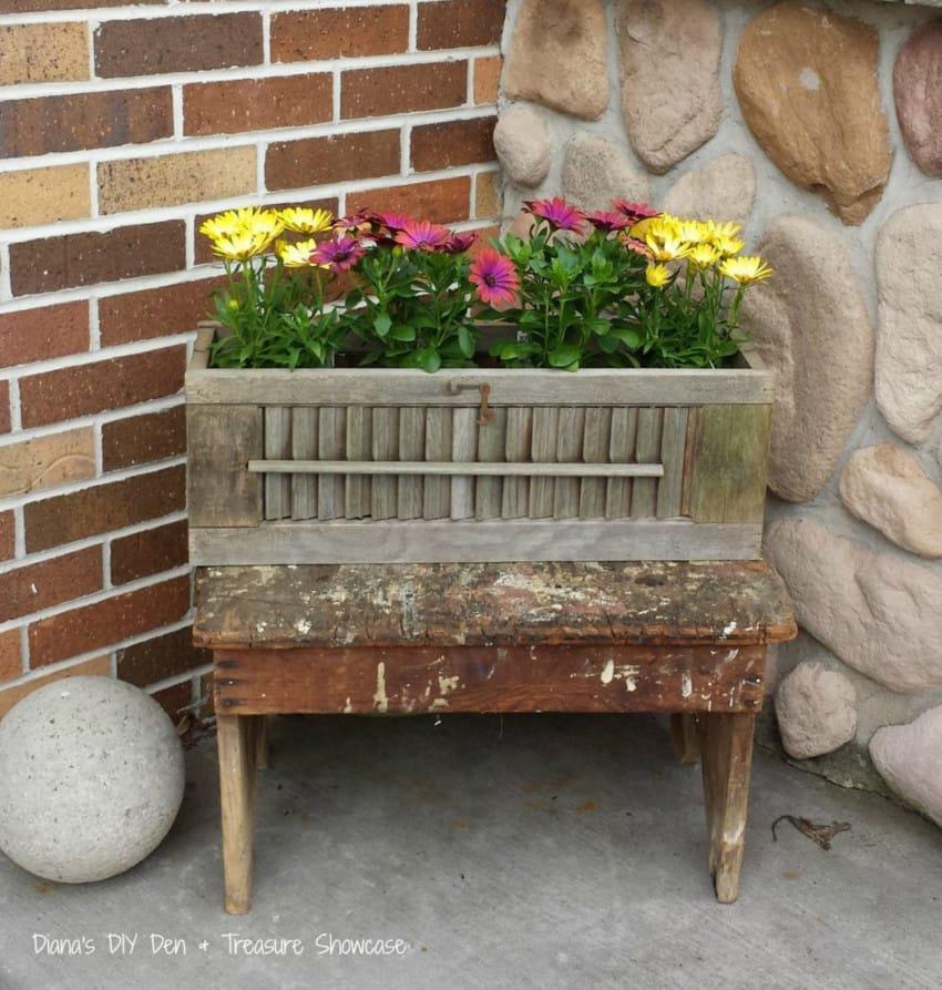 Όπως επίσης και τα παλιά πατζούρια, ένα σημαντικό σπιτικό αξεσουάρ στο παρελθόν, που τώρα το τρώει η σκόνη στα γκαράζ και τα υπόγεια – ενώ στην πραγματικότητα είναι ένας θησαυρός για τους φιλότεχνους! Όταν η Diana εντόπισε σε ένα παζάρι κάποια πατζούρια προς πώληση, κοίταξε μέσα τους και είδε (τρόπος του λέγειν) γλάστρες!